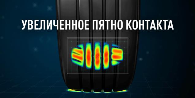 Износостойкость шины увеличена на 11%2 за счет большей площади пятна контакта.
