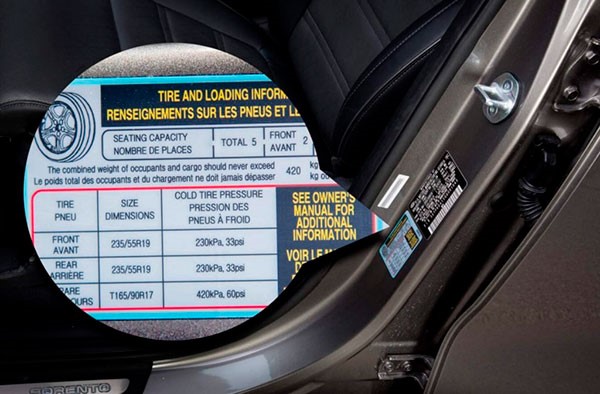 Также узнать заводской типоразмер можно на табличке в проёме водительской двери.