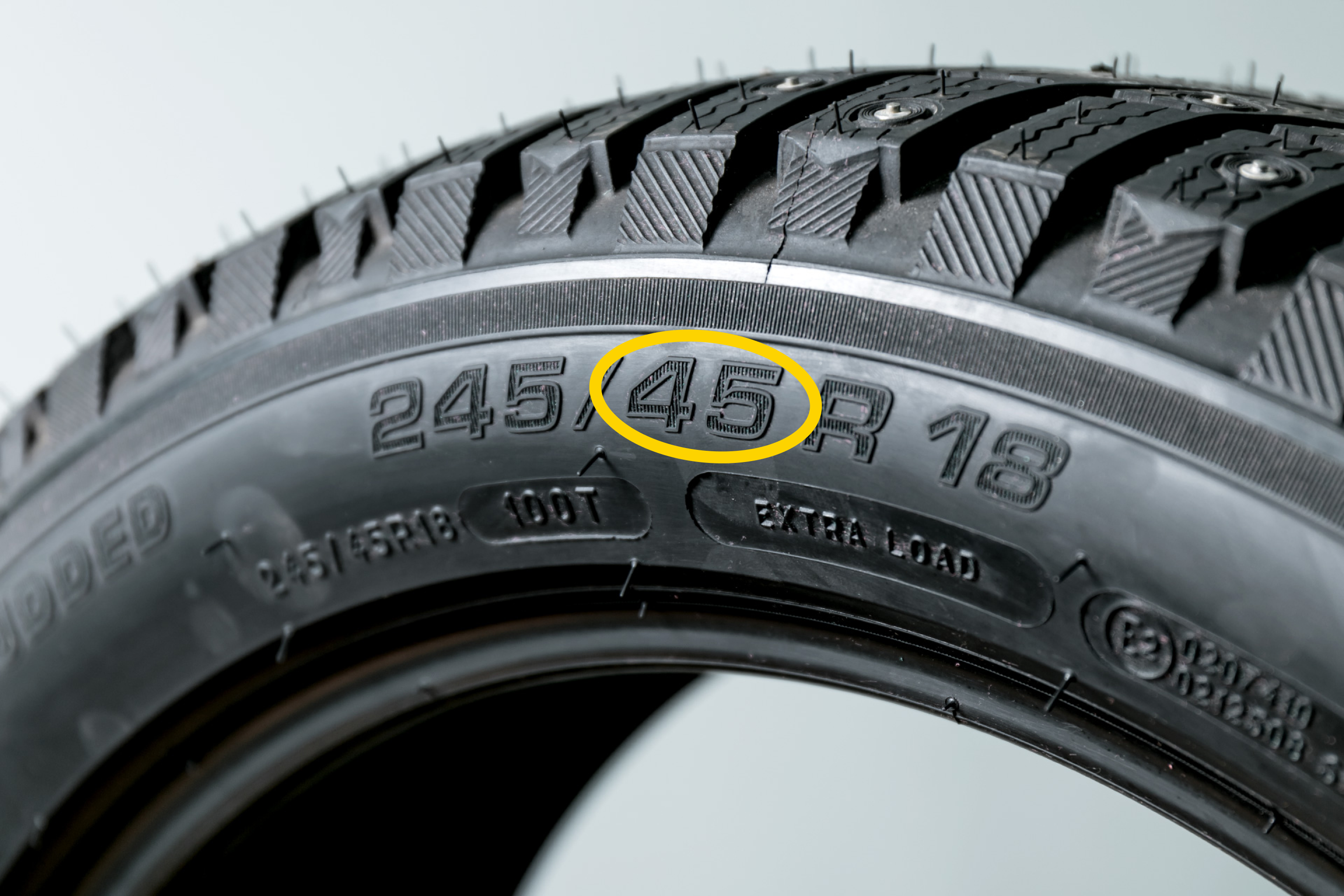 В маркировке автошины профиль указан двузначным числом — процентом от ширины. Например, у шины с размерами 245/45 R18 высота профиля составляет 45% от 245, т.е. 110,25 мм.
